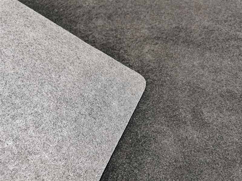 Die Farbe der Vliesmatte ist schwarz. Sie hat eine angenehme, weiche Oberfläche, die sich einfach absaugen lässt.