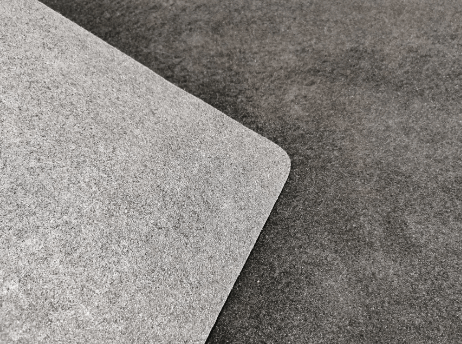 Die Farbe der Vliesmatte ist schwarz. Sie hat eine angenehme, weiche Oberfläche, die sich einfach absaugen lässt.