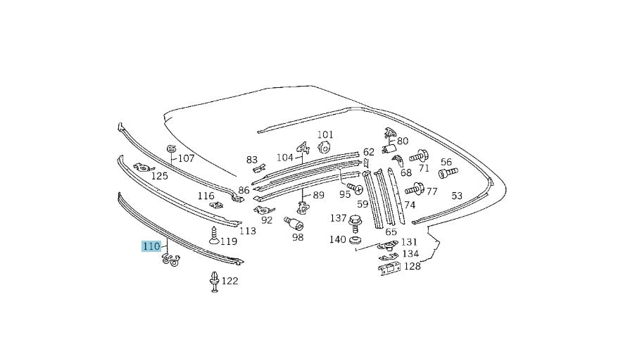 Wir bieten für Mercedes-Benz R129 SL eine neue Dichtung für den Verdeck Rahmen vorn bis F111029  .
