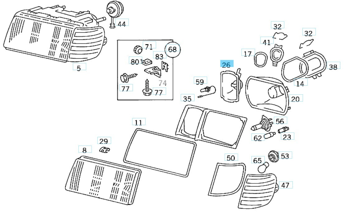 Wir bieten für Mercedes Benz W126 S SE SEL einen neuen zweiteiligen SET gelbe Reflektoren Nebelscheinwerfer für die Marke Bosch.