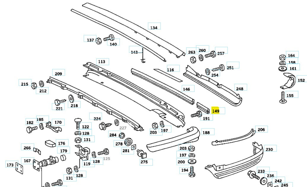 W107 W114 W115 W116 US Modell Schutzschiene hinten außen Stoßstange