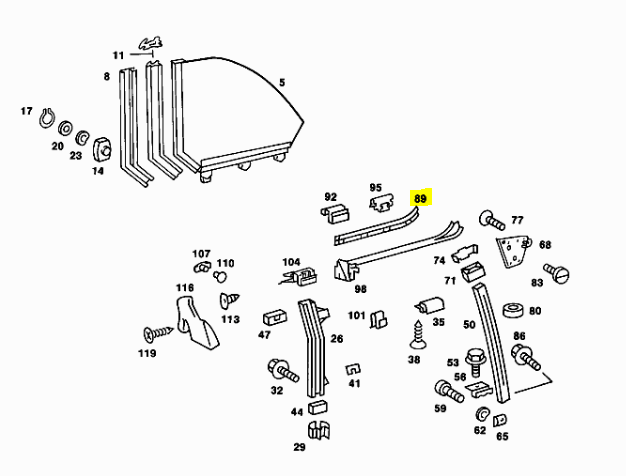 Wir bieten für Mercedes Benz W123 Coupé eine neue Abdichtschiene für das Seitenfenster hinten rechts innen.