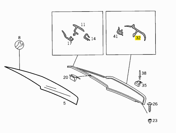 Wir bieten für Mercedes Benz W124 Sedan eine neue originale Abdeckung unten für die Heckscheibe.