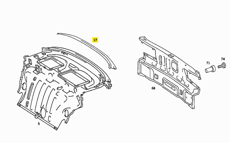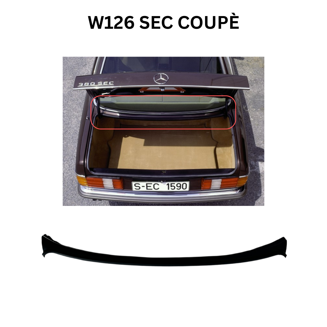 Wir bieten für Mercedes-Benz W126 SEC Coupé eine neue Beplankung Unterseite Heckscheibe und Kofferraum.