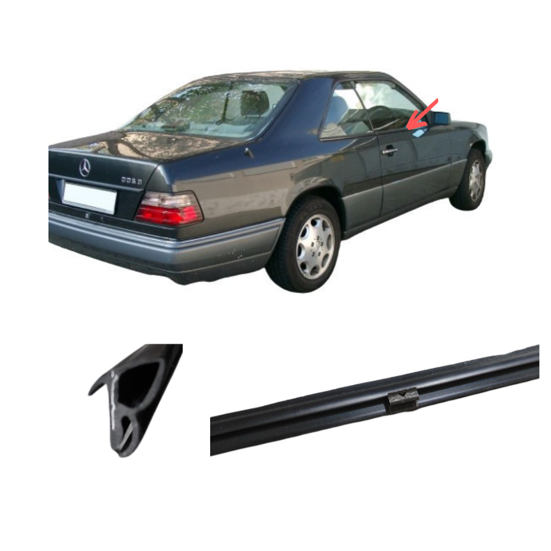 Wir bieten für Mercedes Benz W124 Coupé/ Cabrio eine neue Türfensterschachtleiste / Abdichtschiene außen rechts mit Metalleinlage .