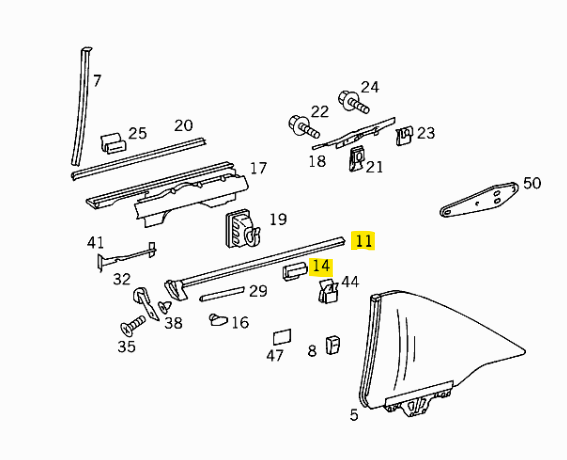 Wir bieten für Mercedes Benz W124 A124 Cabrio eine Abdichtschiene für das Fondfenster / hintere Seitenhinten rechts außen Neu