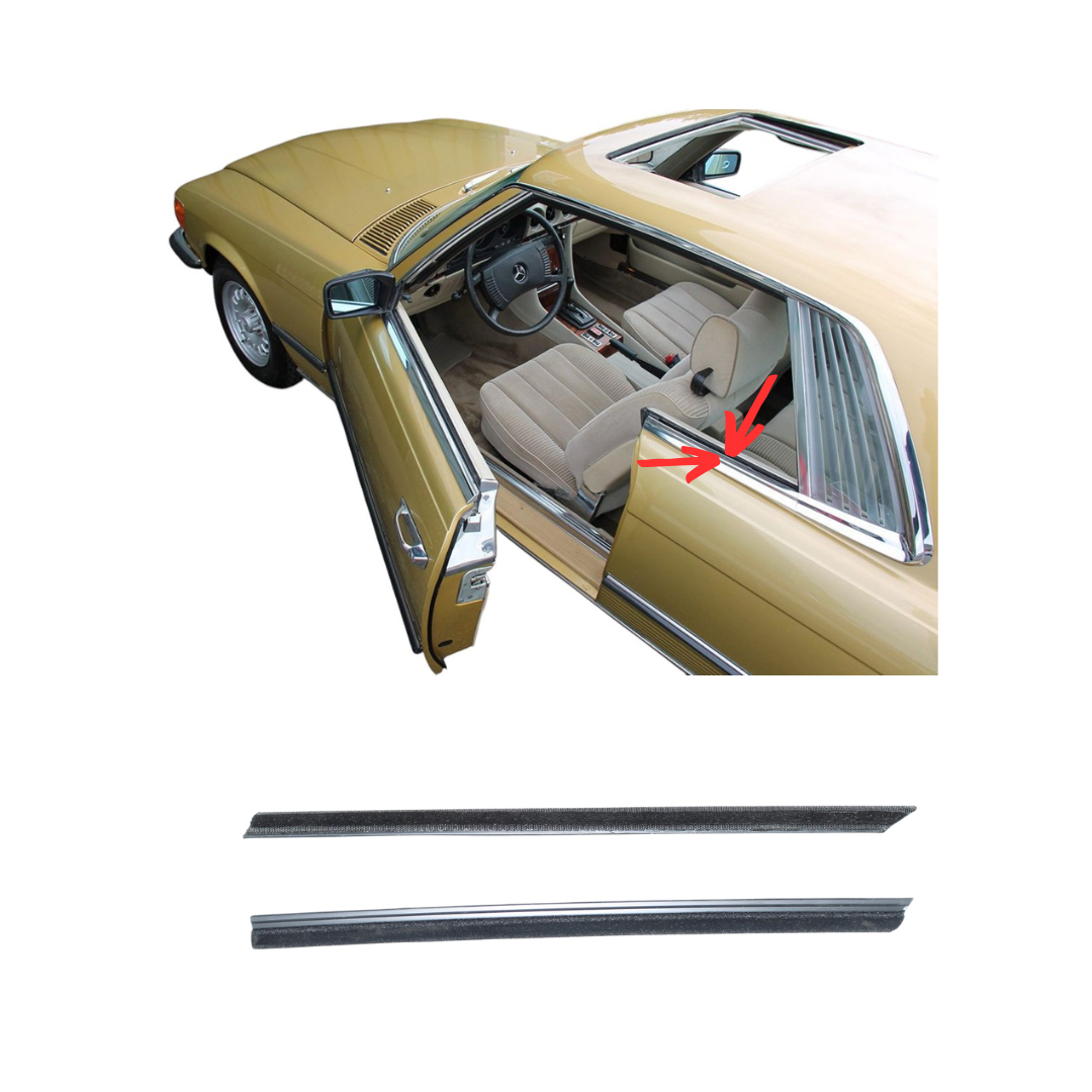 Wir bieten für Mercedes-Benz W107 SLC Coupé einen neuen Abdichtschienen SET für das Fondfenster links außen und innen.