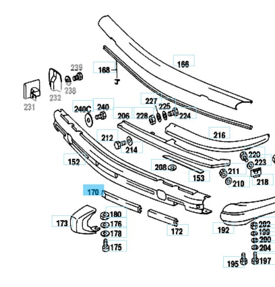 W107 W114 W115 W116 US Modell Schutzschiene innen Mitte Stoßstange