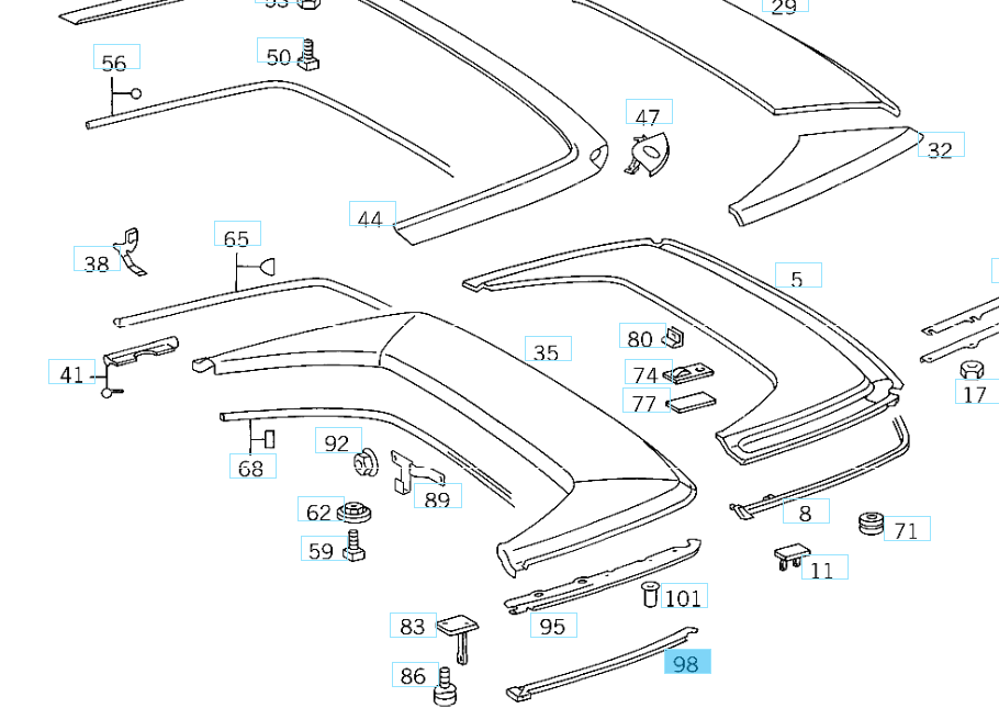 Wir bieten für Mercedes-Benz R129 SL eine neue Abdichtung SET für den Verdeckkasten links & rechts.