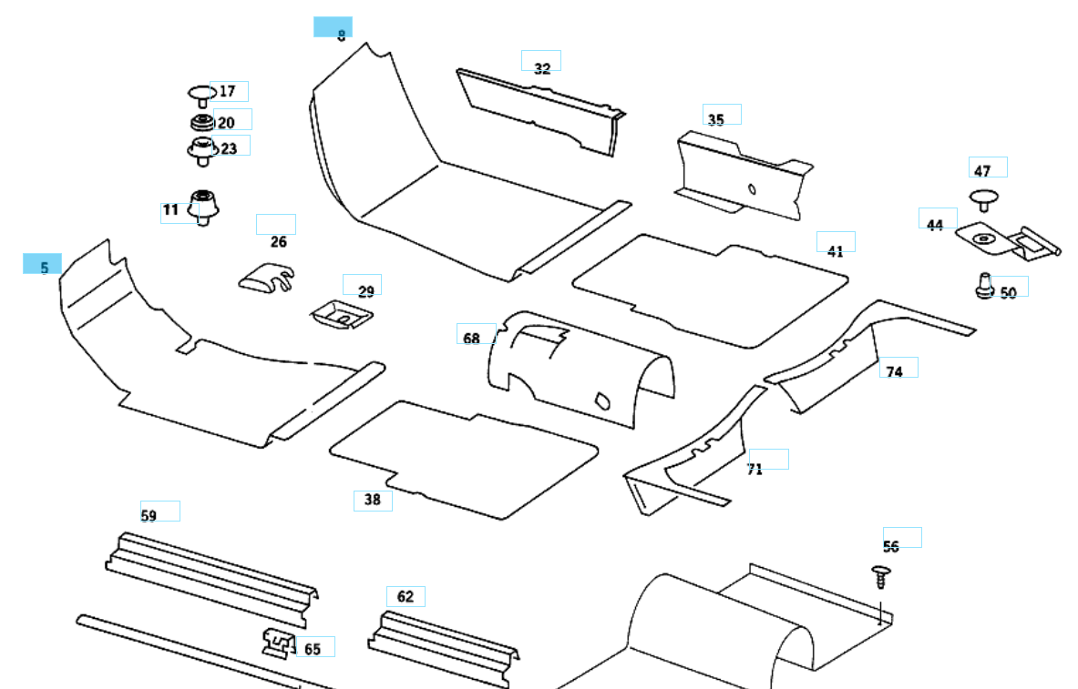 Wir bieten für Mercedes Benz W201 190E 190D ein neues PU Schaumstoff / Dämmung Formteil vorne rechts und links ohne Teppich.
